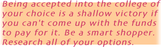 In addition to the federal aid and loans, there are other sources available for finding college money. Your library has a number of great books that will help you find and apply for the right scholarship. Also look into civic and community groups, foundations, corporations or labor unions that may offer scholarships. And don't forget to browse the Internet for some of this information. Some great places to start are www.finaid.org; www.salliemae.com; and http://www.fastweb.com. Finally, be cautious. Some companies claim to "find" scholarships for a fee. Any offer that boasts that the "scholarship is guaranteed or your money back," or requests a credit card, bank account number or money to "hold" the scholarship may be what the Federal Trade Commission calls a "scholarship scam." You shouldn't have to pay to find scholarship information. Remember, to get the best financial aid package available, follow these three easy steps: 1) APPLY EARLY - some financial aid is awarded on a first-come, first-served basis. Get your materials out as soon as you and your parents can safely estimate their income for the past year. Estimates are acceptable, but must be realistic as schools may ask for proof. 2) BE THOROUGH - fill out every form carefully and sign everywhere indicated. If you miss even one signature, your forms can be delayed for weeks. 3) BE A GREAT STUDENT - the better your grades, scores and other accomplishments, the more schools want you. You've worked hard to get where you are. The long hours of study, a rigorous course load and a full plate of extra-curricular activities are now primed to pay off. But transferring into the college of your choice is a hollow victory if you can't come up with the funds to pay for it. So, in addition to being a smart student, be a smart shopper. Research all of your financial aid options. Invest the time to labor over the proper forms and applications. Enlist your college financial